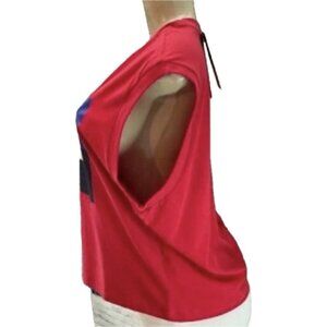 ITEM: The North Face XL Red/Blue Logo Graphic Crew Cotton Waist-Length Muscle Tee