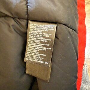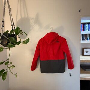 Stay warm and stylish with this North Face youth softshell jacket in red and gray. Designed for durability and comfort, this jacket is water-resistant, insulated, and perfect for outdoor adventures. The full-zip front, secure zippered pockets, and adjustable cuffs provide both function and style.
