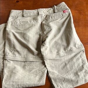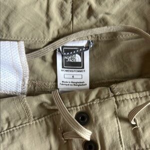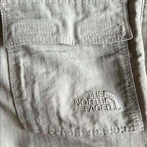 Versatile tan cargo pants by The North Face. Features multiple pockets and zip off legs to make shorts. Ideal for outdoor adventures.