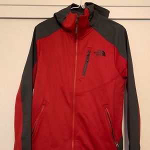 Only worn a dozen times. Great red color, has hoodie and zip up. Very comfortable jacket and easy to maneuver in.