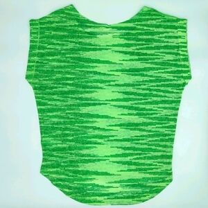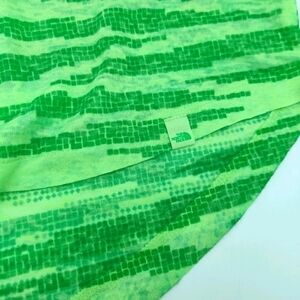 Very pretty athletic tee from The North Face. This tee is done in two shades of green in a geometric pattern. The sleeves are a cap sleeve style with a roll and a crew neck. This is a high low top in excellent condition in a size M.