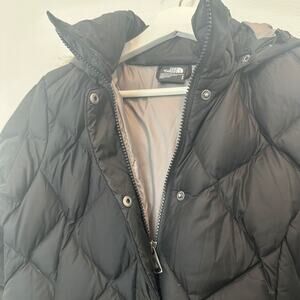 The North Face black longline diamond quilted hooded puffer parka coat jacket S