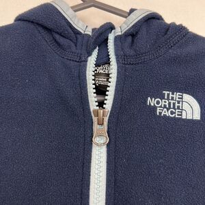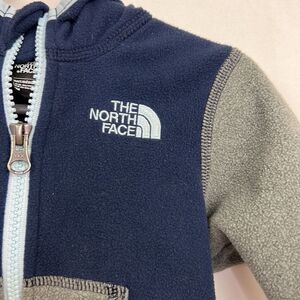 The North Face blue and gray hooded fleece full zip jacket size 6-12 months EUC