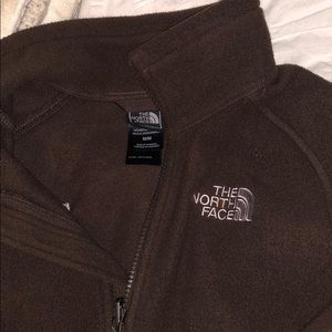 Brown North Face fleece. Full zip. Pockets with zip closure. North face logo on front and back. Used, in great condition.