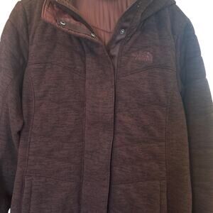 Item: The North Face dark red snap two way zipper hooded quilted coat SIZE M