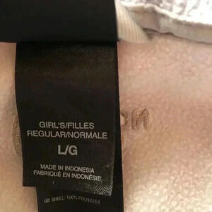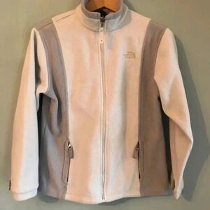 Girls large grey and cream colored full zip fleece jacket. Excellent used condition. No flaws.