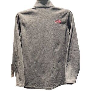 Stay warm with The North Face Girls/Women's fleece jacket. This grey jacket with a pink trim is 36 in chest and 24 in long, full zip with long sleeves. Check tags for size and material details.