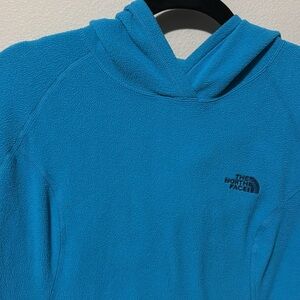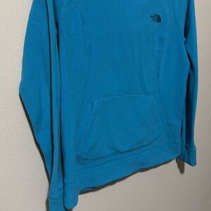 GUC hooded pullover fleece with pocket on front, no notable flaws. Pretty blue color. Women’s medium by The North Face