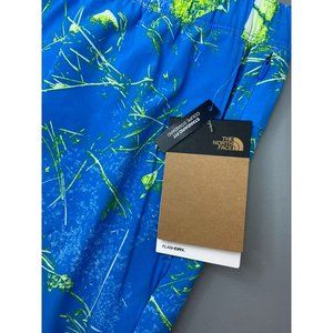The North Face brand men's size medium blue and green patterned wander shorts. Brand new with tags. Lightweight unlined performance shorts are moisture wicking and water repellent. Have a great stretch. Elastic with drawstring waist.