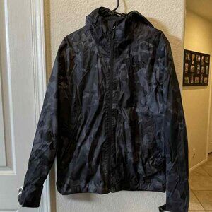 The North Face mens windbreaker jacket with hood, camo design, color gray/black, size medium, in like new condition