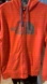 Stylish orange hoodie from The North Face. Features a front logo and zip-up design. Size large