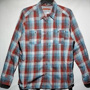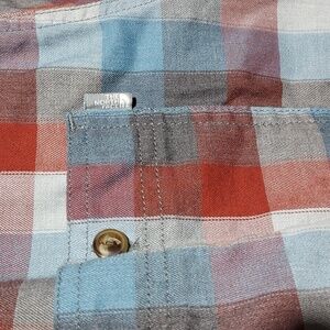 The North Face plaid long sleeve button-up men's shirt size XL. There are no flaws to call out. A-002