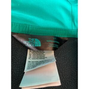 The North Face pullover hoodie half dome size small gray turquoise. 100% polyester. Kangaroo pockets. double layer hood.