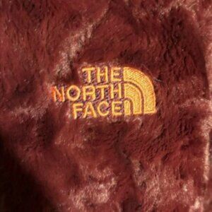 Warm Reversible Orange /maroon fleece jacket by The North Face. Ideal for cold weather.