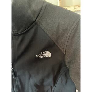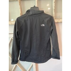 The North Face size medium women’s black jacket with charcoal gray sleeves. Excellent condition. Measures 20” from armpit to armpit and 24” long.