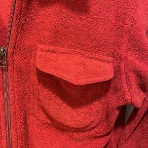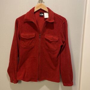 The North Face woman’s red/orangeish zip up fuzzy jacket