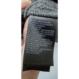 Stay warm and stylish with this North Face fleece jacket. The jacket is perfect for women in size S and is designed to keep you warm with its full zip closure and polyester insulation material. The jacket is machine washable and has a solid pattern that makes it easy to match with different outfits. The long sleeve design and mid-length cut make it a versatile piece that can be worn in different settings. The jacket has a basic jacket style and is ideal for casual wear. The jacket is branded with the North Face logo and comes in a gray color.