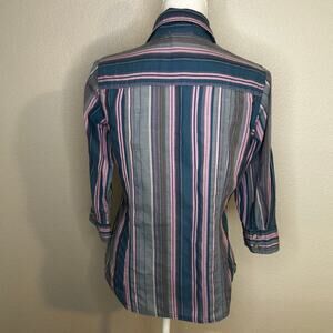 The North Face women's organic cotton striped snap button down 3/4 sleeve size M