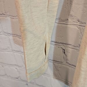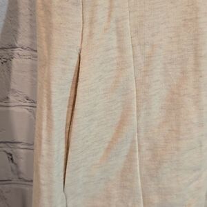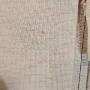 In very good used condition tiny spot in the front as shown. Light cream in color. 2 front pockets and thumb holes