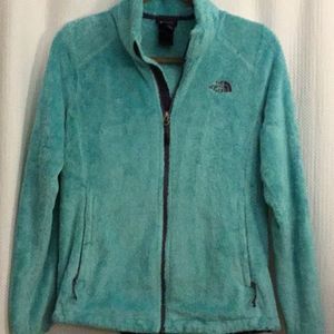 Light green full zipped fleece jacket with 2 zip front pockets. Pit to pit is aprox 19 length aprox 25. Great preowned condition.