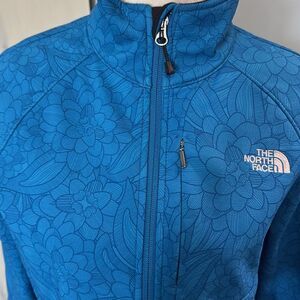 The North Face Jacket. Blue with a flower detail it has a breast pocket and two side pockets size medium. Excellent used condition and from a smoke free and pet friendly home.