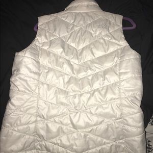 Size medium white vest. Only 1 flaw, small green mark on the pocket.