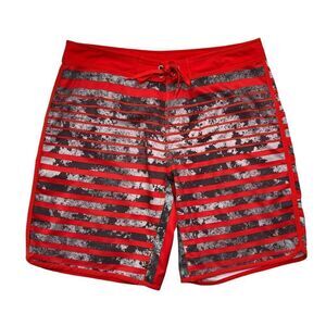 The North Face Boardshorts Men's Size 36 Red & Gray Camo Beach Swim Trunks