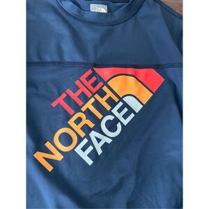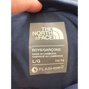 The North Face Boys Flash Dry Long Sleeve Logo Tee navy blue color red organdy blue logo. Similar to Dri fit material. Brand new condition kids boys size large