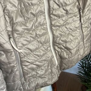 Great lightweight the north face puffer jacket. Rapid dry technology. Excellent condition. Made with recycled materials, not down.