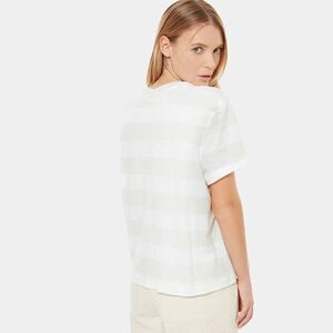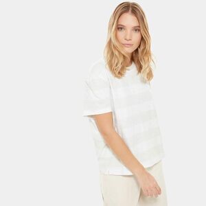 Simple boxy tee, Great for layering and soft cotton fabric. White with cream/grey stripes.