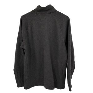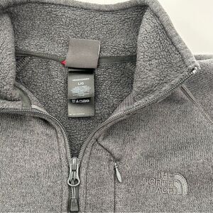 The North Face dark gray quarter zip fleece size large. Excellent condition. So cozy and soft. See photos for measurements, fabric content and details