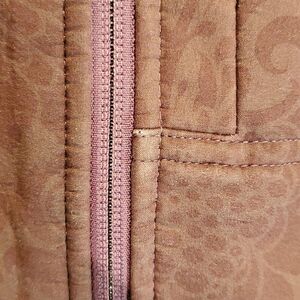 In used condition some fading and wear as shown. Purple in color with 3 pockets and a full zip front