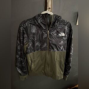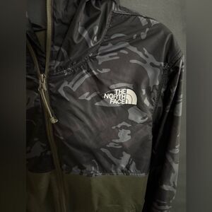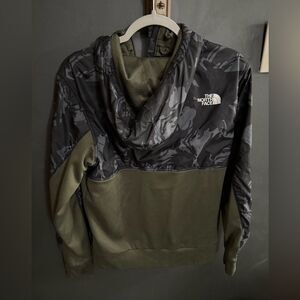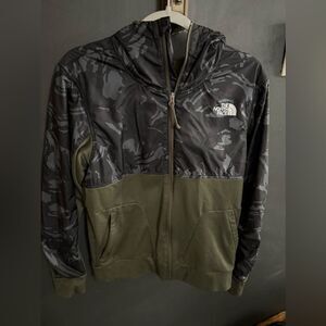 The Northface Full Zip Down Hooded Jacket Men's Size Small Green Black Multi