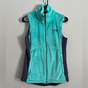 The Northface Fuzzy Vest in a Bright Blue, with darker blue on sides