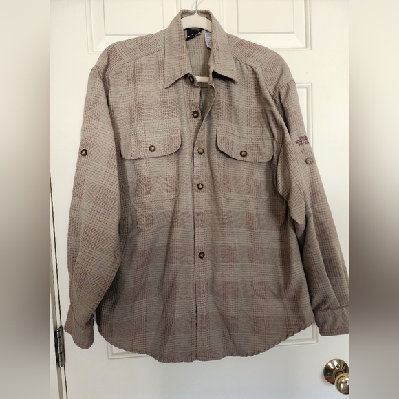 The Northface tan plaid outdoors button Longsleeve size medium hiking camping