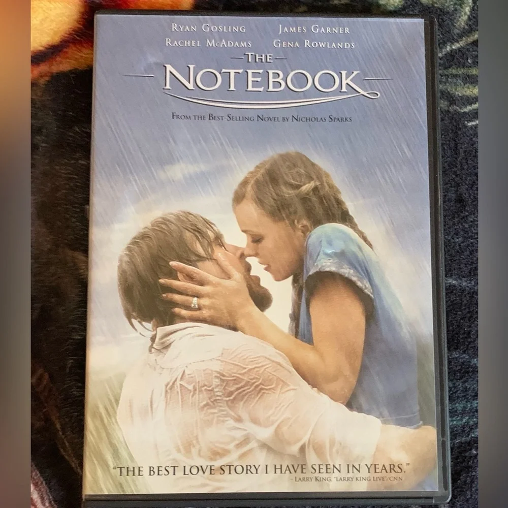 The Notebook DVD featuring a romantic cover scene stating Rachel McAdams and Ryan Gosling.