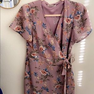 Drift away into a world of fantasy, innocence, and grace with this stunning wrap dress. The light-weight material makes the most beautiful flow with each step you take. She buttons on the inside and wraparounds on the outside for closure support. Fall in love T O D A Y !