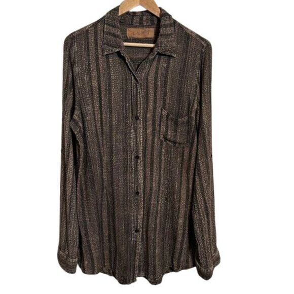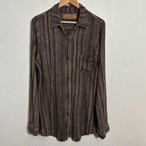 The Nu Vintage Button Up Tunic Shirt M Brown Textured Long Sleeve Stripe Boho