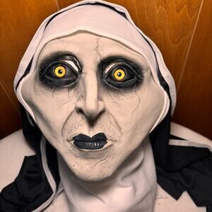 Get ready to terrify this Halloween with The Nun Face Mask! This scary latex mask is designed for adults and provides a full head covering, perfect for recreating the terrifying look from The Conjuring. Scare your friends and family with this high-quality, horror-inducing mask. It's the perfect addition to your Halloween costume for a truly frightening experience. Order now and prepare for a night of scares!