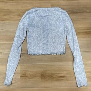 The OG Tee Collection Aero Shrunken Tee Light Blue Floral Long Sleeve Crop Top S