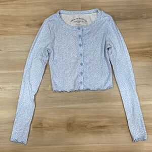 The OG Tee Collection Aero Shrunken Tee Light Blue / Baby Blue Floral Long Sleeve Shirt Ribbed Crop Top Button Up