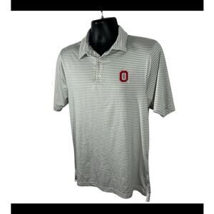 Show off your Buckeye pride with this stylish gray striped polo shirt! Perfect for any Ohio State fan, this polo features the iconic scarlet and gray colors and is suitable for various occasions, from game days to casual outings.