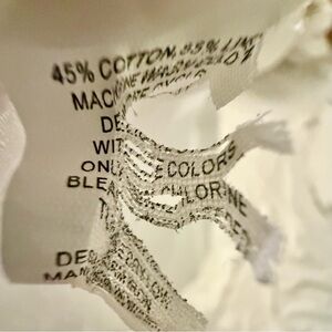 🪡 Fabric/care tag is partially torn, but similar Oaks dresses are typically 45% cotton / 55% linen.
