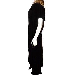 The Oblong Box Shop XL 1X Rare Wrap Dress Black and Cheetah Print Hooded Maxi