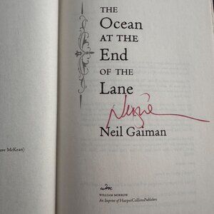 This signed first edition of Neil Gaiman’s "The Ocean at the End of the Lane" takes readers on a mystical journey through childhood memory and fantasy. Delve into a world where reality blurs with magic, expertly crafted by the New York Times bestselling author.