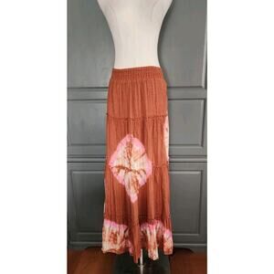 The Odells Anthropologie Tie Dye Flowy Pink 38"L Maxi Skirt Size 1X Made india