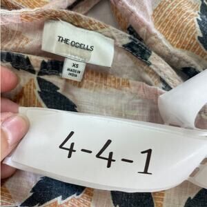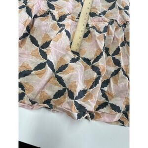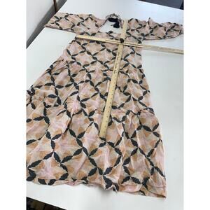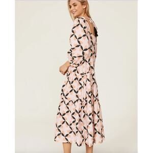 The Odells Dress Womens X Small Pink White Geo Print Lyla Motif Midi Puff Sleeve