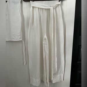 Cropped pants with elastic band with tie.