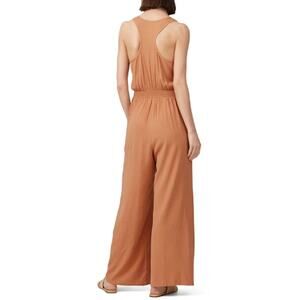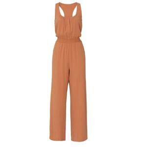 Keywords: The Odells wide leg jumpsuit, caramel brown romper, sleeveless summer jumpsuit, scoop neck crepe jumper, lightweight beach jumpsuit, casual resort wear, chic one-piece outfit
