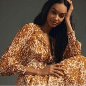 The Odetta Ruffled V Neck By Anthropologie Ladies Dress Size Large